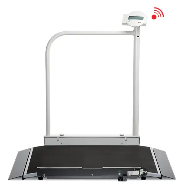 Mains powered and Class III Approved electronic platform scale with side handrails and transport castors. With wireless data transmission. Price includes approval certification fees. Capacity 300 Kg.