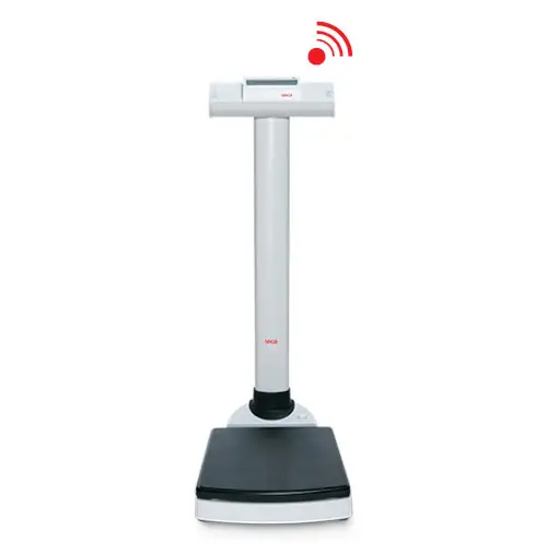 Electronic column style personal scale with very high capacity and large platform. Has Class III Approval and BMI function. Can also interface to a wireless printer. Price includes approval certification fees. Capacity 300 Kg.