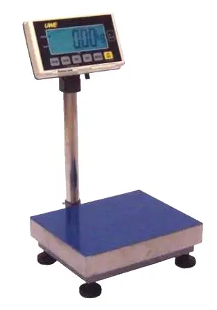 Bench scale operated either by mains or internal rechargeable battery (charger supplied). It features a large and clear backlit pole mounted LCD display for easy readability. Capacity choices 6 Kg. to 30 Kg.